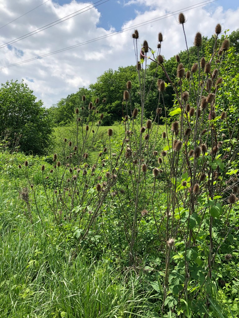 Just before you come to the first house on your left you cut across the field.  After a few meters you will meet the path that comes from Chemin des Etalles and you follow this pathway back to you starting point.