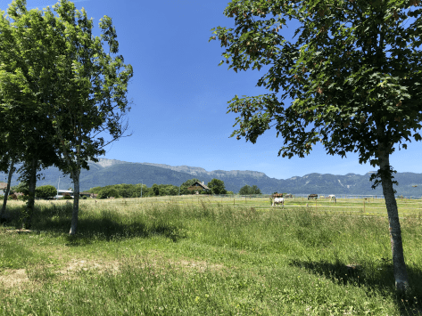 You will now walk along a small stream, La Lillette, where you can see the horses from Bellevue stables. There are benches and picnic tables along this path, so why not bring your lunch or snack and enjoy an outdoors meal?