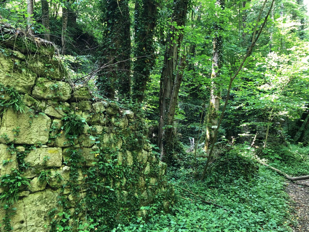 As you walk down along the old stream, you’ll notice something interesting on the right side of the path: you’re passing lots of old ruined houses, some of them barely visible in the overgrowth of bushes and trees. This is a clear sign of milling activity from way back. Try to imagine this as a very lively place back in the days, when many families would have been working and living here.
