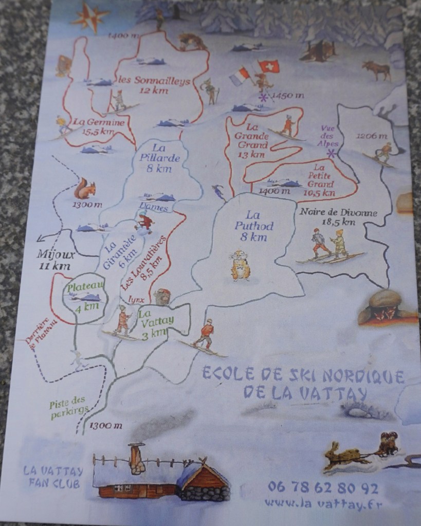 Something else which differs from my native Norway, but I actually find great, is that all the trails are one-way only. When you’re heading down a slope, the risk of crashing into somebody coming in the opposite direction (or being rammed by a less experienced skier coming down a slope at high speed) is non-existent. This makes cross-country skiing at La Vattay very safe. But don’t forget to watch out for each other, always monitor your speed and the speed of the others, especially in places with steeper descents. Always assess the situation and make room for somebody potentially falling over. Leave enough time for others to get up before you attempt your turn on the descent to avoid accidents. Adults weigh more than children and will therefore catch more speed. If somebody should tumble and fall over in front of you, and you can’t steer clear, it’s better to just do a controlled fall yourself – at least you’ll avoid hitting the other person. The reason for saying all this is that my daughter almost got her eye rammed by the tip of a beginner’s ski as a child – she fell during a descent, failed to get up in time, and a novice lady at full speed coming down the same path was clearly not in control of her own speed, failing to exit the piste, just yelling for my 5-year old daughter to clear the tracks. It was a close call, but the situation could have been completely avoided if the beginner had done a controlled fall.