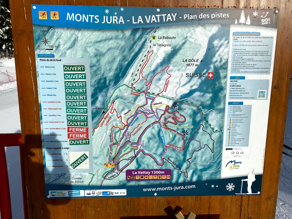 La Vattay and Mont-Jura is maybe not the biggest or most visited domain for cross-country skiing and snowshoeing in France, but for those of us who live in the Pays de Gex or Geneva, it is the closest. It is also the safest bet for finding cross-country ski trails with snow since it is north-facing and most of the trails are not too exposed to the sun.