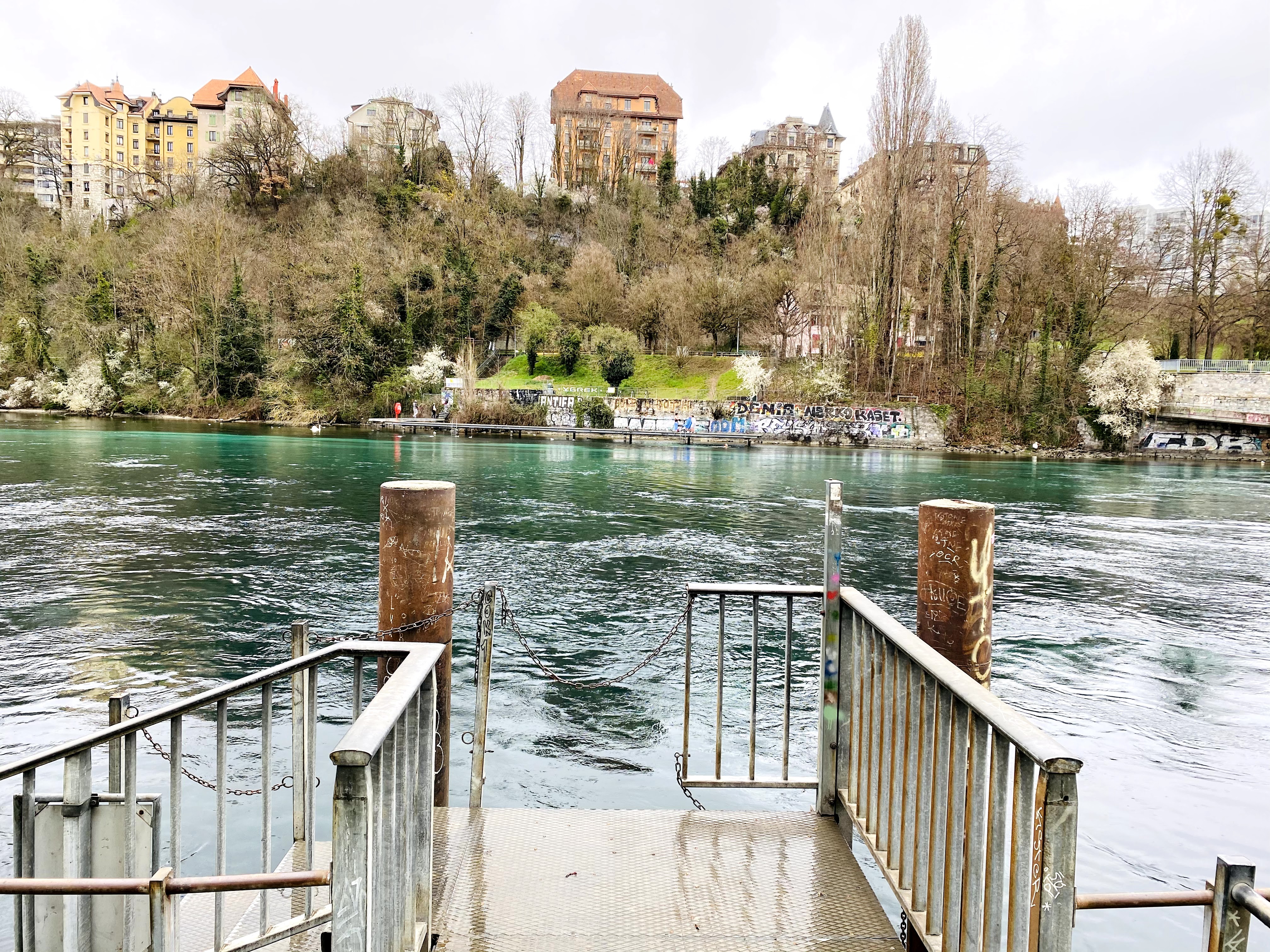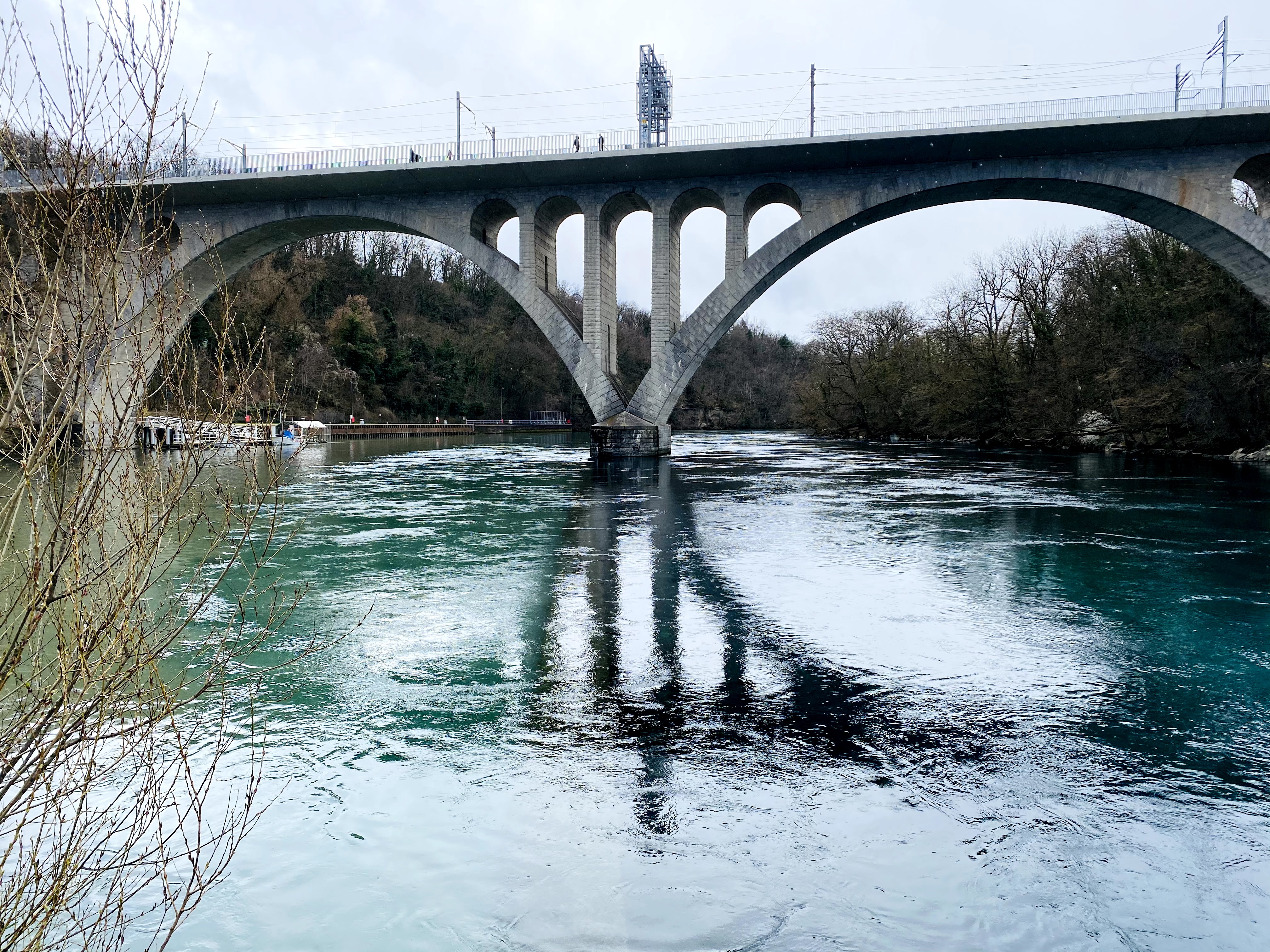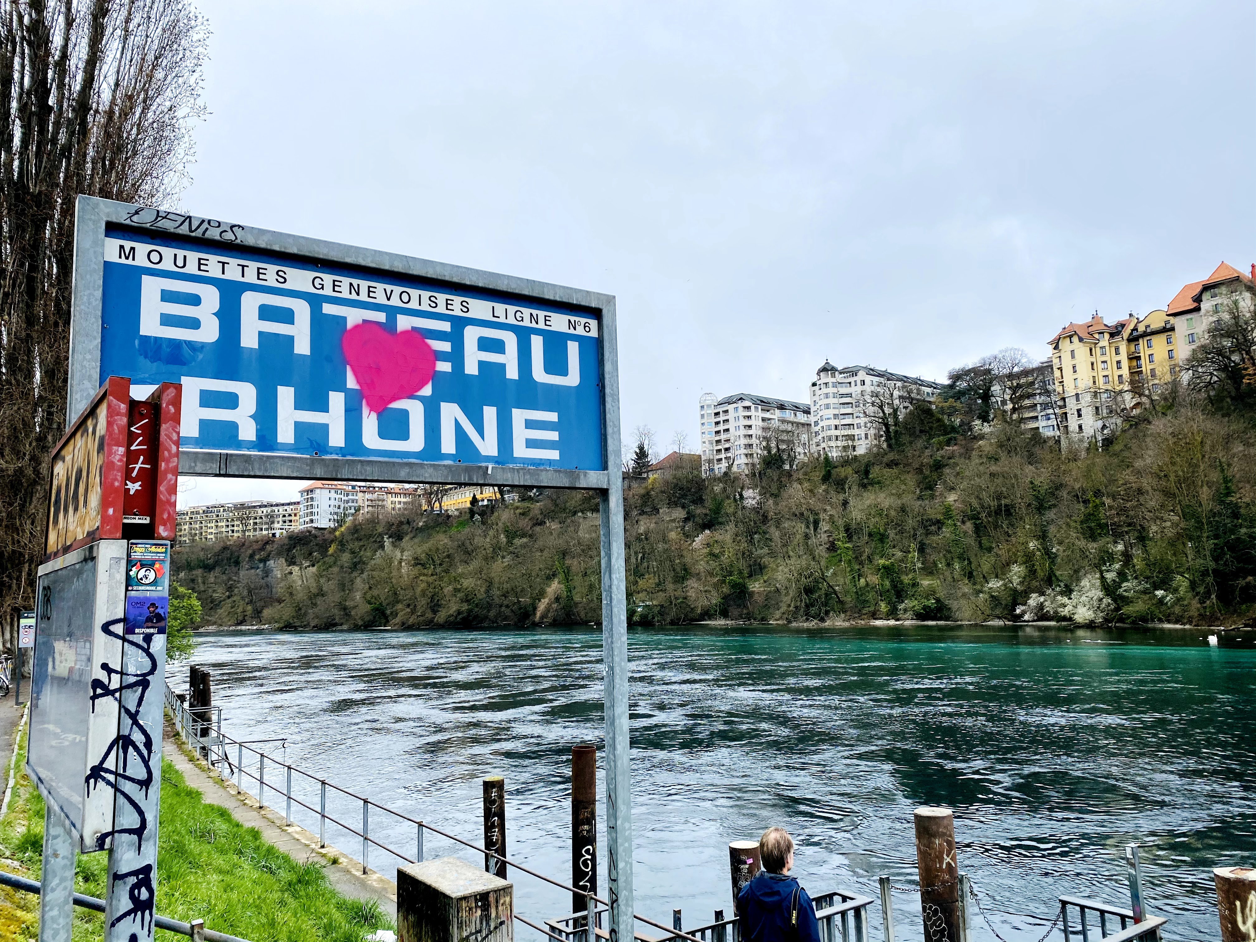 The walk along the Rhone was so nice on this sunny Sunday, so I deviated from the marked trail on the map. I walked all the way to La Pointe de la Jonction. Seeing the different colours of the River Rhone and the River Arve is extraordinary. The best spot for seeing the colour differences in the rivers merging at Jonction is the big bridge that you see in front of you.