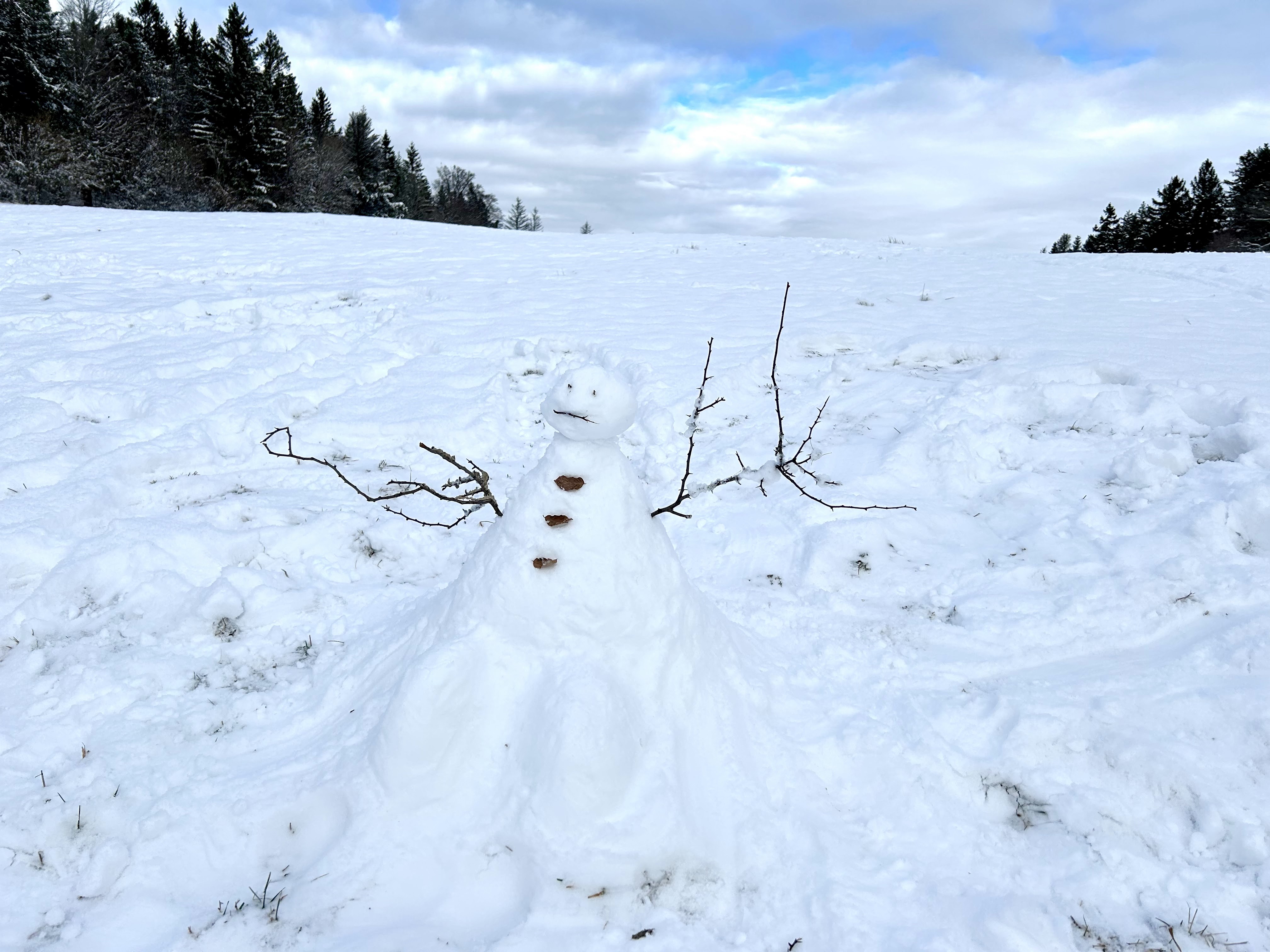 From where I parked the car it takes around 30 minutes to walk up to the forest Chalet. The elevation is around 170 meters and should be manageable even for small feet. If you have a sledge with you I am sure that the small feet with be comfortable installed on the sledge while you will be sweeting a little extra pulling them upwards.
