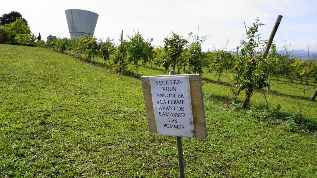 Leaving the village towards the roundabout in Collex, keep walking straight until Chemin de Orcy and another sign signalizing that you can buy apples and fresh eggs. Here, turn left.
